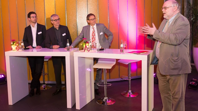 About 60 guests visited the first Creavis Lounge. Besides employees of Creavis and representatives of the segments and the Corporate Center, about one third of the guests had an external background and came from industry, science, and politics. "We see a creative source of inspiration in the Creavis Lounge," explained Prof. Stefan Buchholz, head of Creavis. "We address extraordinary and industry relevant fields. A key element is also to network and to communicate and end the business day in a relaxed atmosphere and thus foster innovation culture."