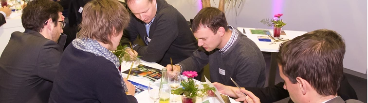 The Creavis Lounge is part of Creavis’s cultural initiative, which aims at promoting collaboration and exchange and encourages exploration beyond each individual’s own boundaries. It is targeted at Creavis’s employees and external stakeholders. “The Lounge has been deliberately designed as an opportunity for visitors to engage in active participation, and is therefore also open to those outside Evonik,” confirms Prof. Stefan Buchholz, head of Creavis. The idea has been very successful: One third of the participants came from outside the Group—from customers, academic institutions, or industry associations. The Creavis Lounge is organized twice or thrice a year, on broad general topics concerning the future, sustainability, and creativity.