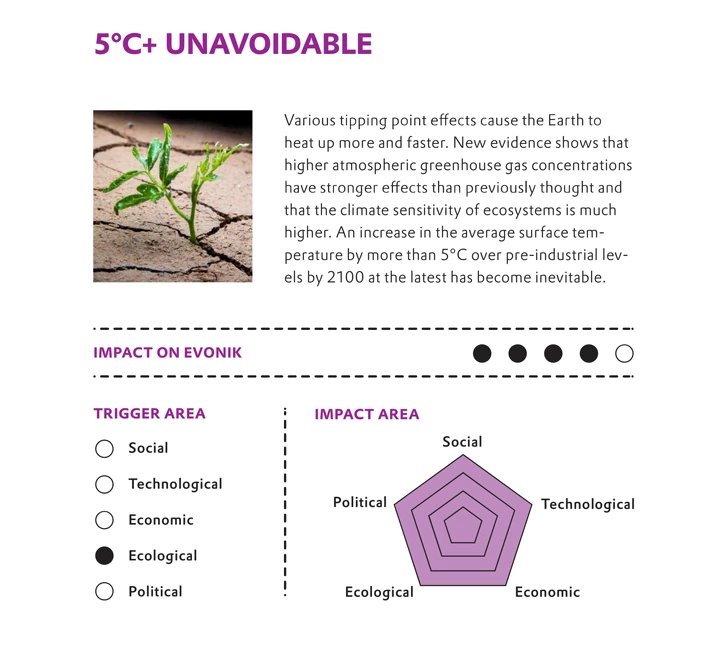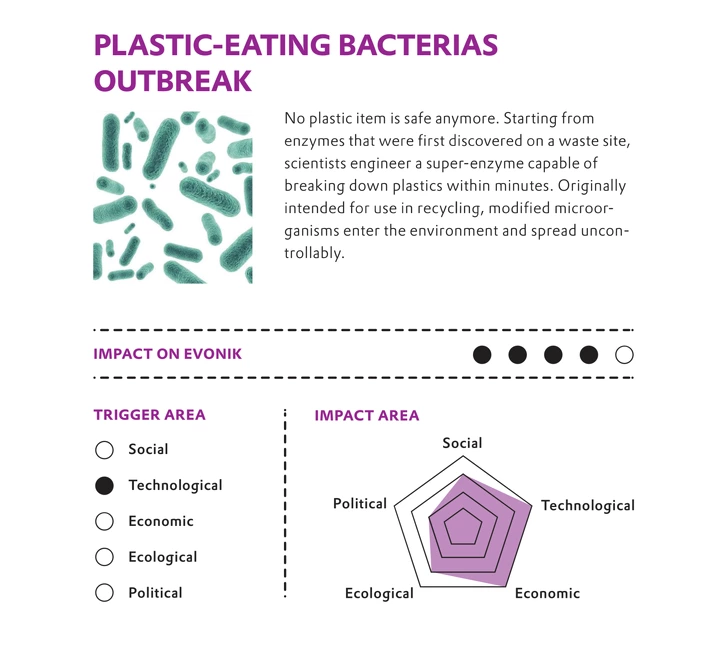 Evonik Foresight and Group Controlling developed 95 so-called wild cards which describe low-probability, high impact events.