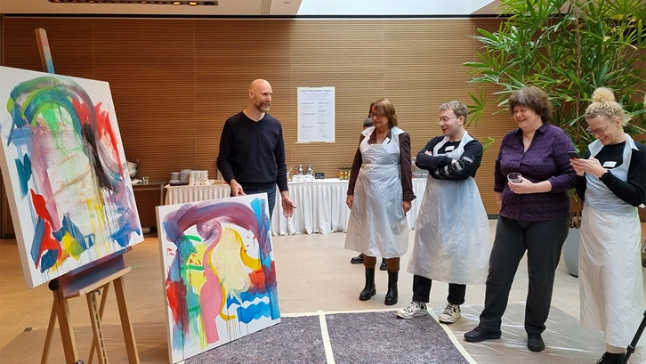 The second day was filled with workshops hosted by Deutsche Bahn, Evonik, Zero 360, The Future Game 2050 (by Frederike Riemers), the founders of the network ZUKÜNFTE, Stefanie Ollenburg and Martin A. Ciesielski, the speculative designers of NORMALS and Yannis Angelis and the painter Roman Lipski. These workshops offered learning experiences in the fields of future GameChanger identification, trend research, storytelling, serious play, sustainability, the translation of foresight insights into solid business cases as well as creating art with the help of an artificial intelligence muse. (If you would like to know more about the several workshops, please follow this link to the detailed workshop descriptions: : https://www.conjectural-futures.net/conference-2022/#sessions)