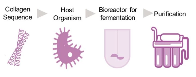 Collagen is frequently used in pharmaceutical applications, in special implants, in artificial tissue, and also in cosmetic surgery. Collagen is found primarily in bones, muscles, skin, and tendons. There it provides strength and structure. When physicians use collagen in the laboratory or in surgery, they have so far resorted to animal material. It comes from cattle, for example, but also rats, jellyfish and more. This has disadvantages: The quality of animal collagen varies from batch to batch and purification to clinical grade quality is costly. In addition, even small contaminations of animal collagen can potentially cause undesirable immune reactions.